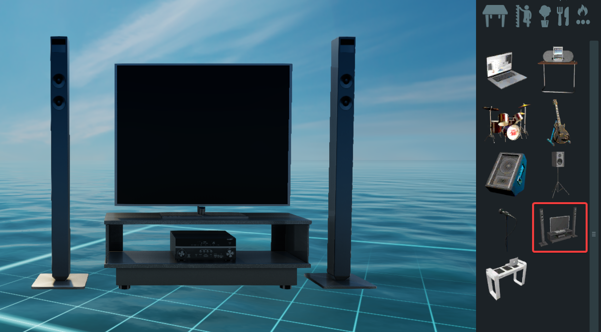 - Для начала нужно расположить в комнате блоки для отображения видео. Расположить их можно в редакторе комнаты. Есть стандартный блок в виде телевизора (экран фиксированного размера) и плоский блок настраиваемого размера.